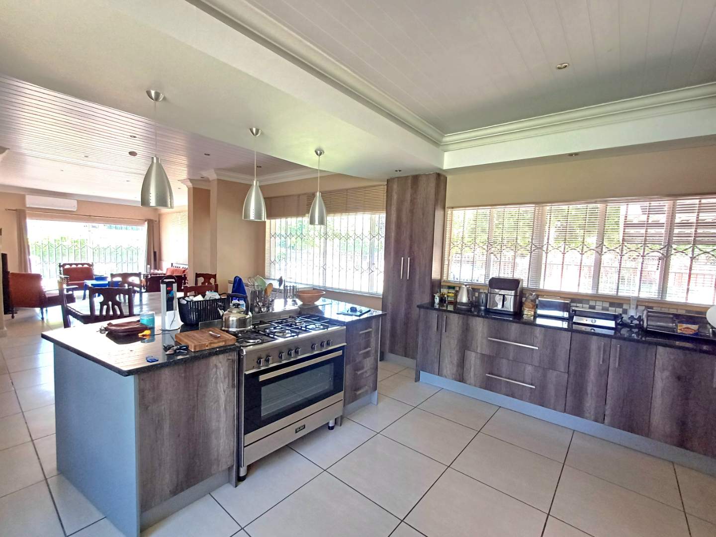 Step inside to discover two spacious living areas, perfect for family gatherings and relaxation, flowing seamlessly into the open plan kitchen boasting sleek finishes, ample cabinetry and separate scullery, making meal prep and cleaning effortless.