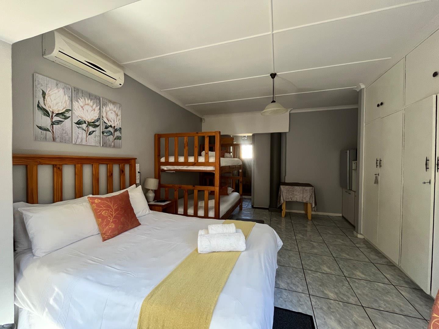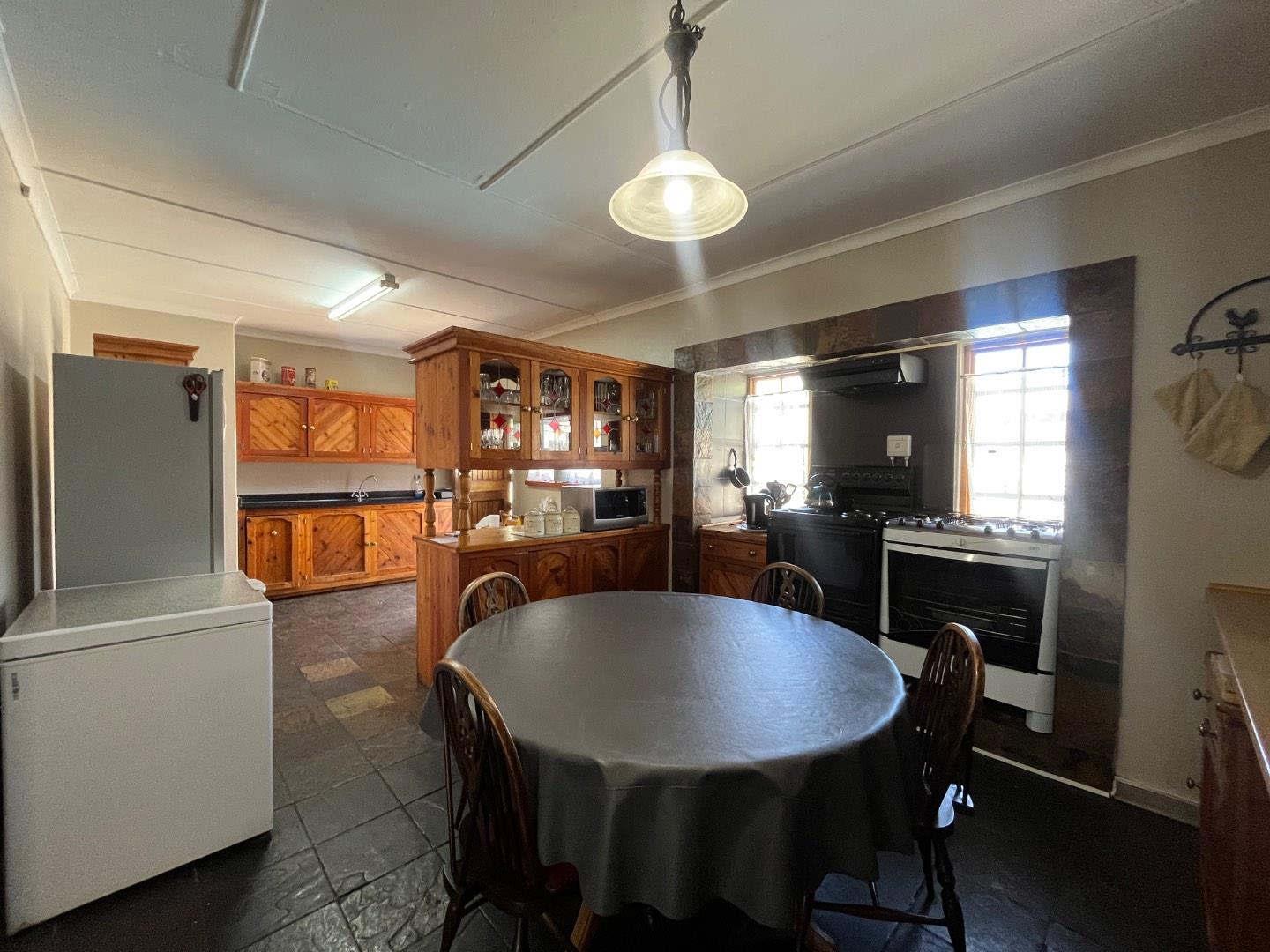 The large, well-equipped kitchen caters easily for multiple guests. The outdoor areas include a sparkling swimming pool, two undercover Lapa areas, and beautiful green gardens ideal for relaxation. Additional features include a laundry room, two storage rooms, and two Wendy houses for extra convenience.