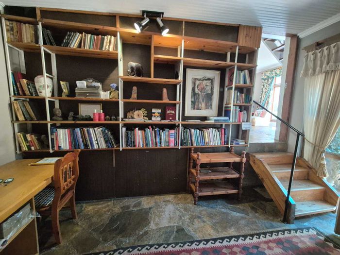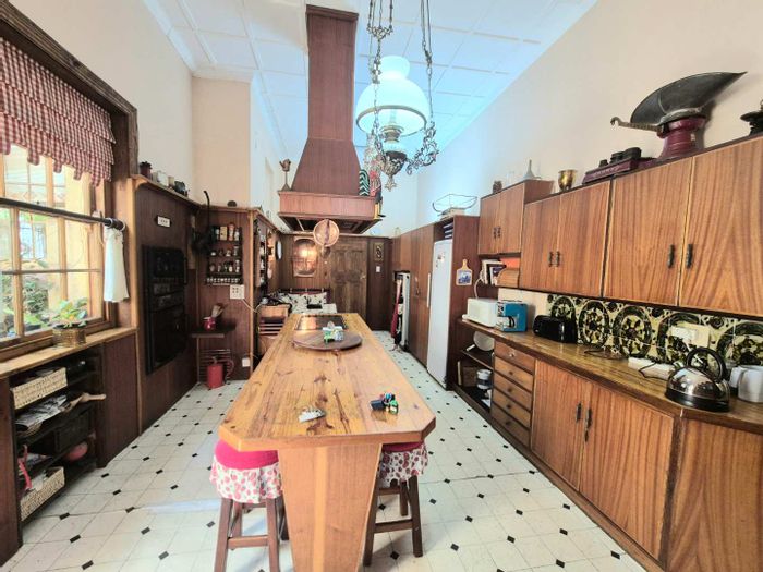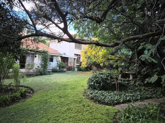 Relish old-world living on a quiet cul-de-sac steps from Oranje School for Girls, set on a vast garden with secret corners; former guesthouse with seven bedrooms, seven baths, five garages.