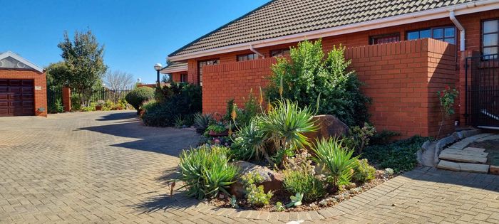 Spacious two-bedroom home with garden, garage, and amenities in a retirement complex offering medical care and community facilities.