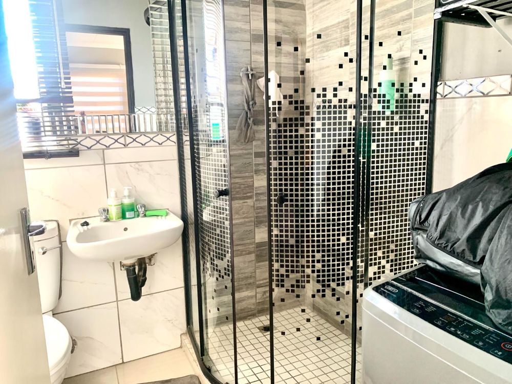 There are two well-sized bedrooms, both with built-in cupboards. The bathroom is equipped with a shower, toilet and basin.