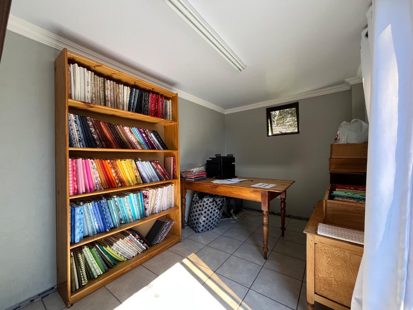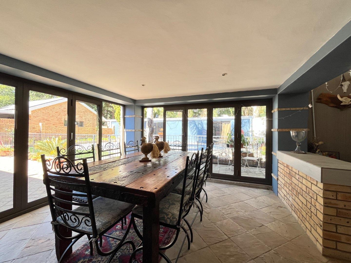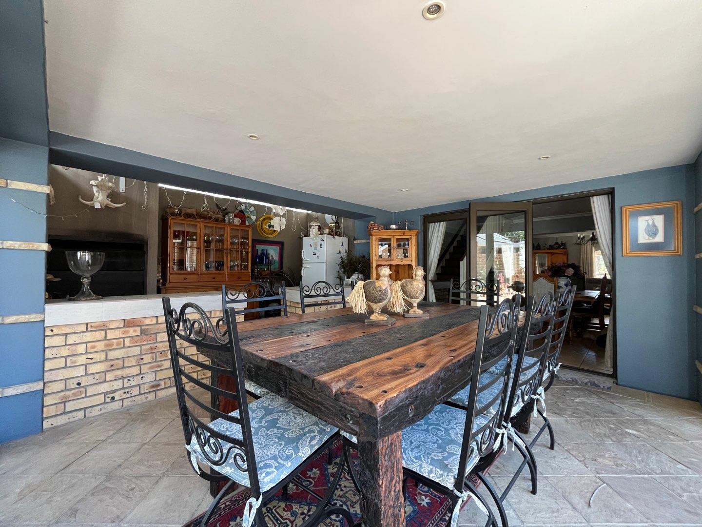 Downstairs, the home offers three bedrooms and two bathrooms, with the main bedroom enjoying its own en suite bathroom. Upstairs, a spacious fourth bedroom serves as a private retreat, complete with a walk-in cupboard and en suite bathroom—ideal for guests or your teenager. The open-plan kitchen flows seamlessly into the dining and living area, creating a warm, social hub for family life. For year-round entertaining, there’s a separate indoor braai room with a built-in braai, overlooking the sparkling swimming pool. Adding to the versatility, two outside buildings can easily be used as home offices, hobby rooms, or a dedicated kids’ entertainment space. A double garage with an additional double carport provides ample parking.
