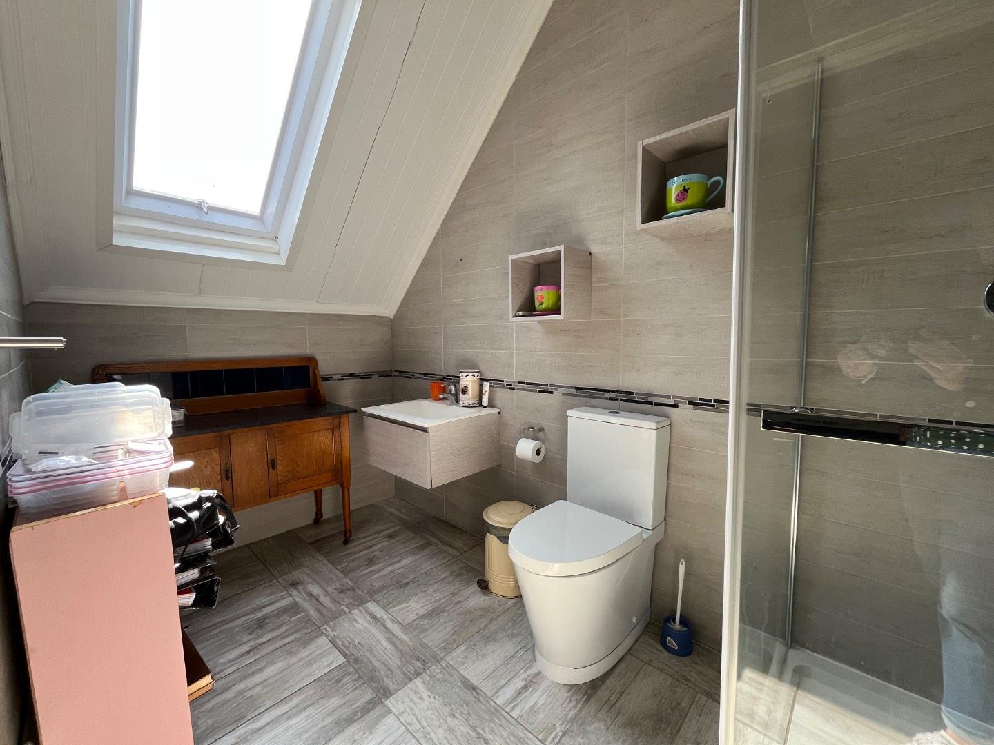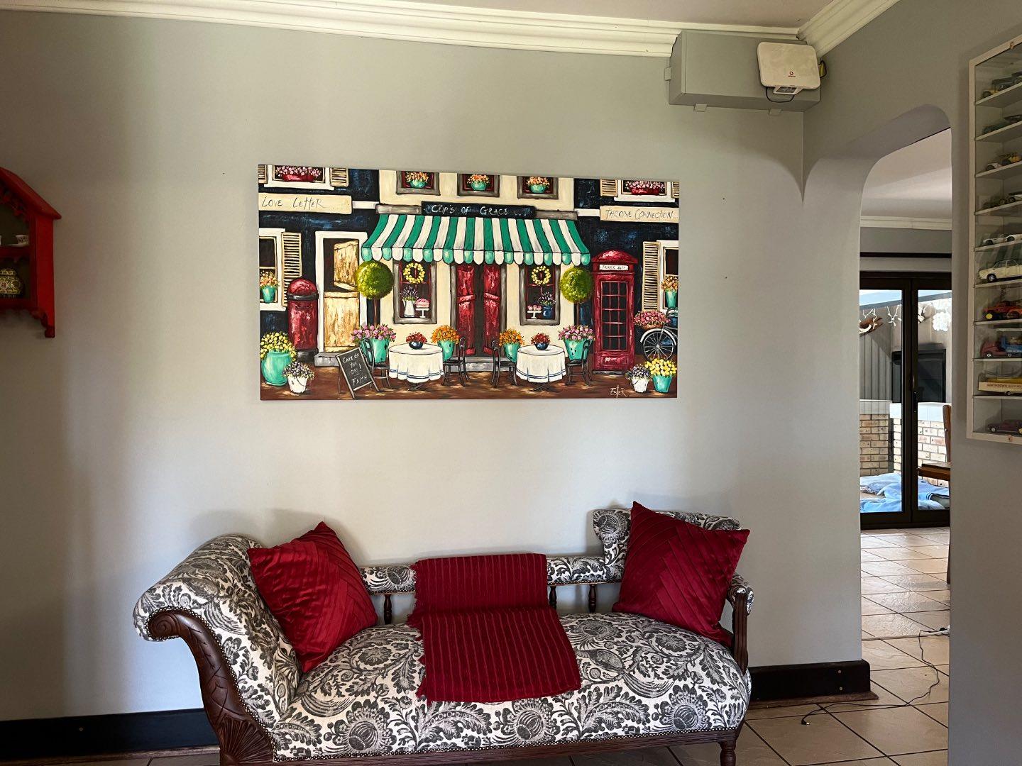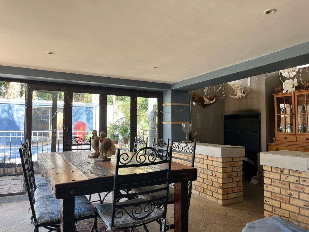 Downstairs, the home offers three bedrooms and two bathrooms, with the main bedroom enjoying its own en suite bathroom. Upstairs, a spacious fourth bedroom serves as a private retreat, complete with a walk-in cupboard and en suite bathroom—ideal for guests or your teenager. The open-plan kitchen flows seamlessly into the dining and living area, creating a warm, social hub for family life. For year-round entertaining, there’s a separate indoor braai room with a built-in braai, overlooking the sparkling swimming pool. Adding to the versatility, two outside buildings can easily be used as home offices, hobby rooms, or a dedicated kids’ entertainment space. A double garage with an additional double carport provides ample parking.