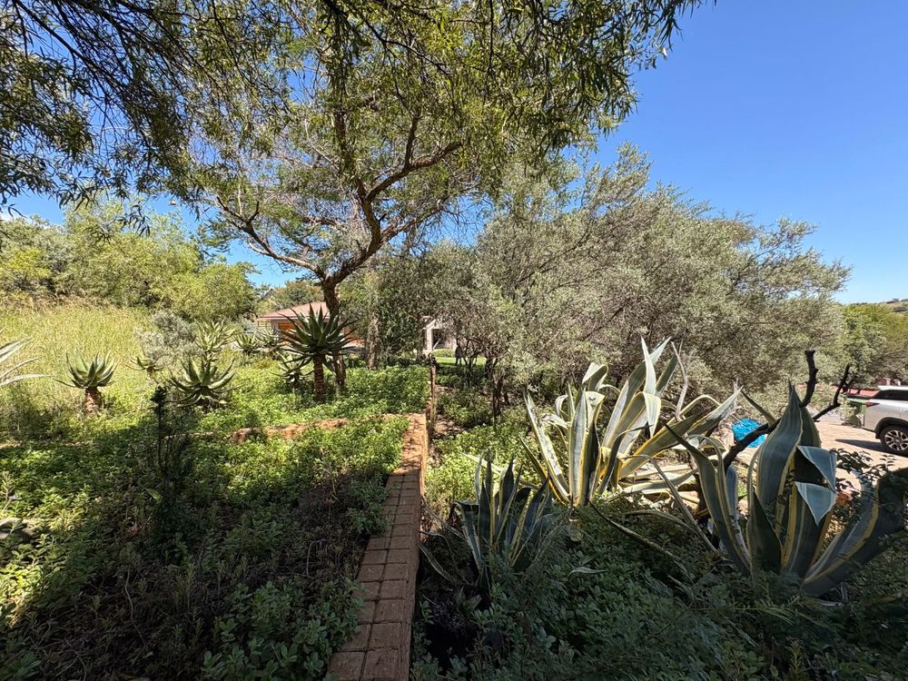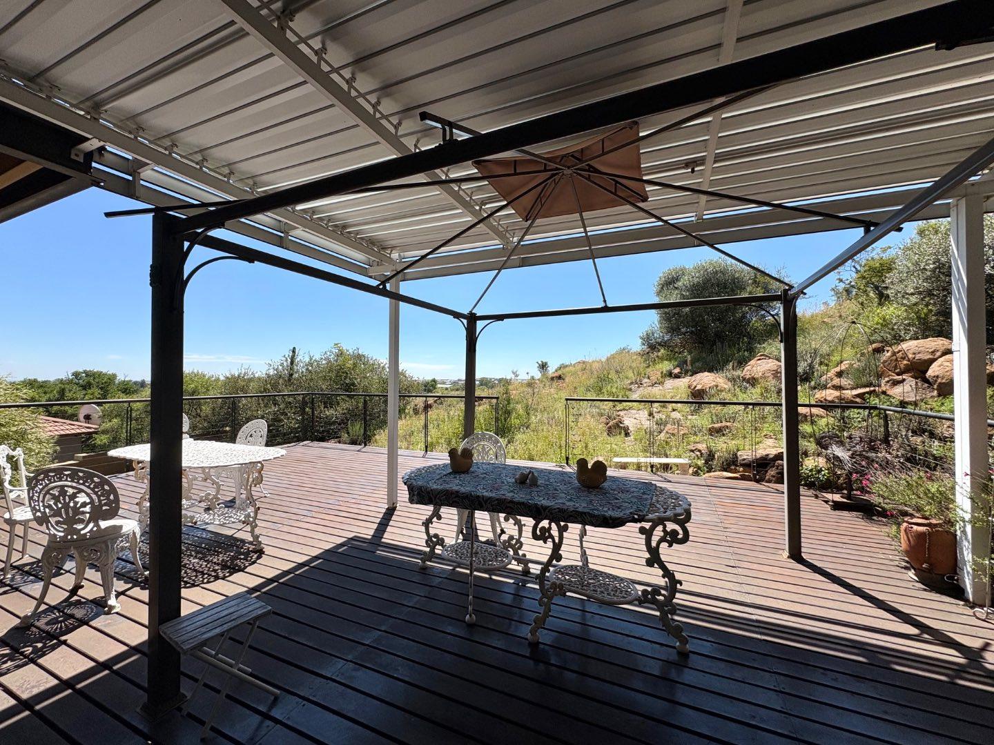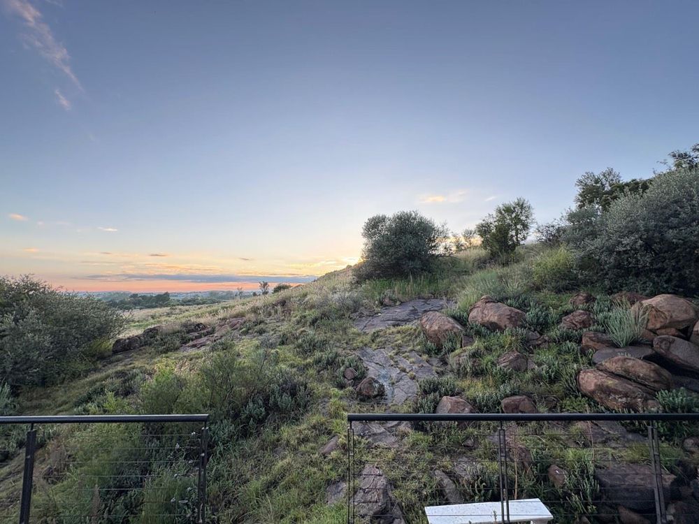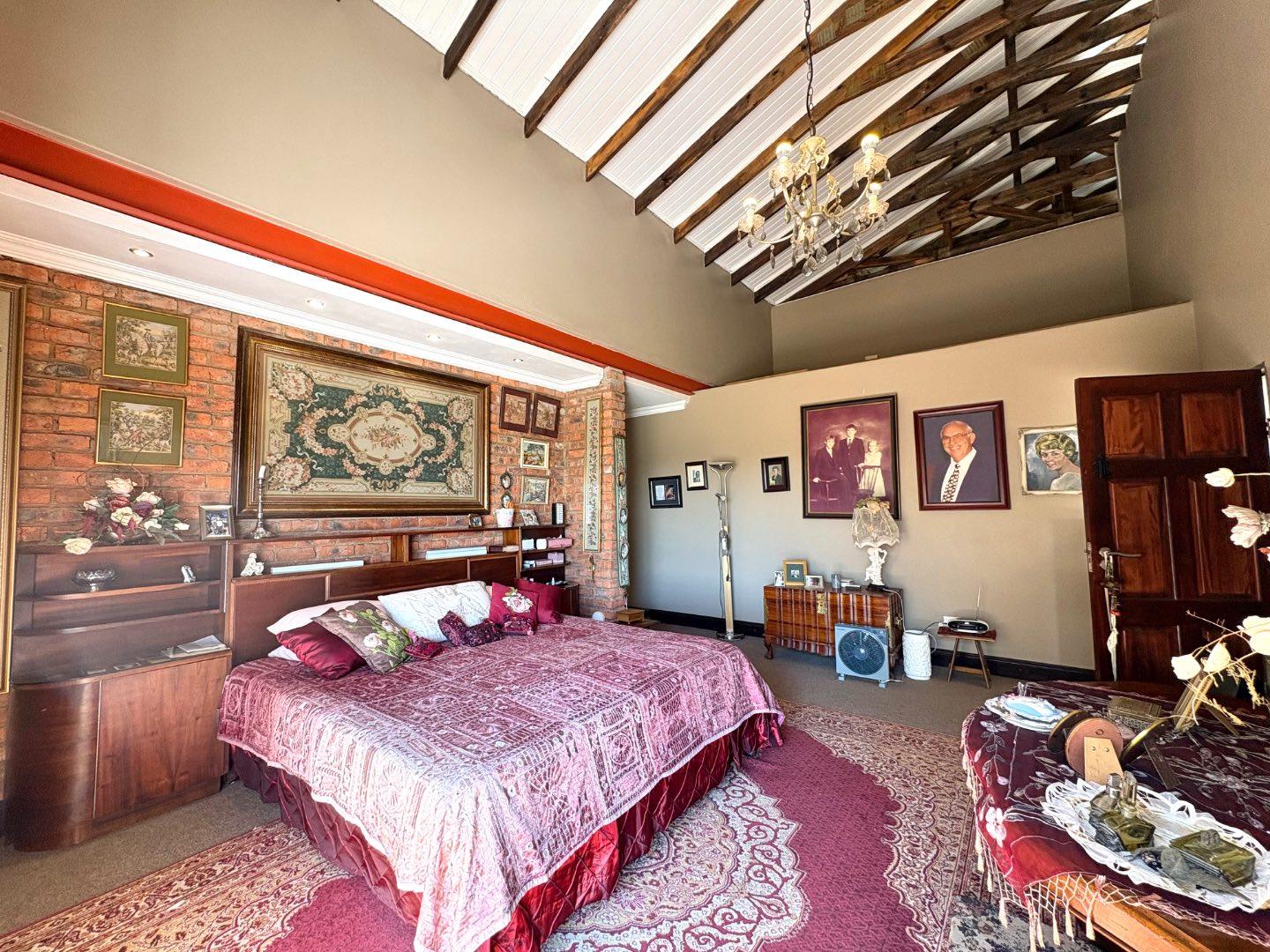 The home welcomes you with a spacious open-plan dining, living and kitchen area featuring double-volume ceilings that enhance the sense of light and space. A second living area overlooks the green belt includes a built-in braai and cozy fireplace – ideal for those crisp Free State evenings. Sliding doors open onto a covered patio where you can relax or entertain while soaking in the magnificent views.