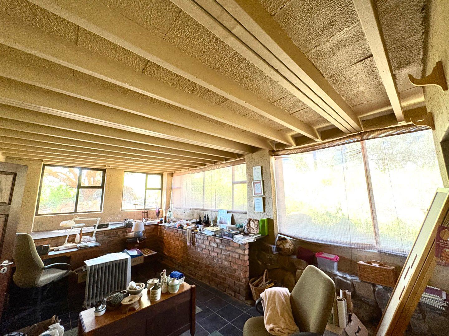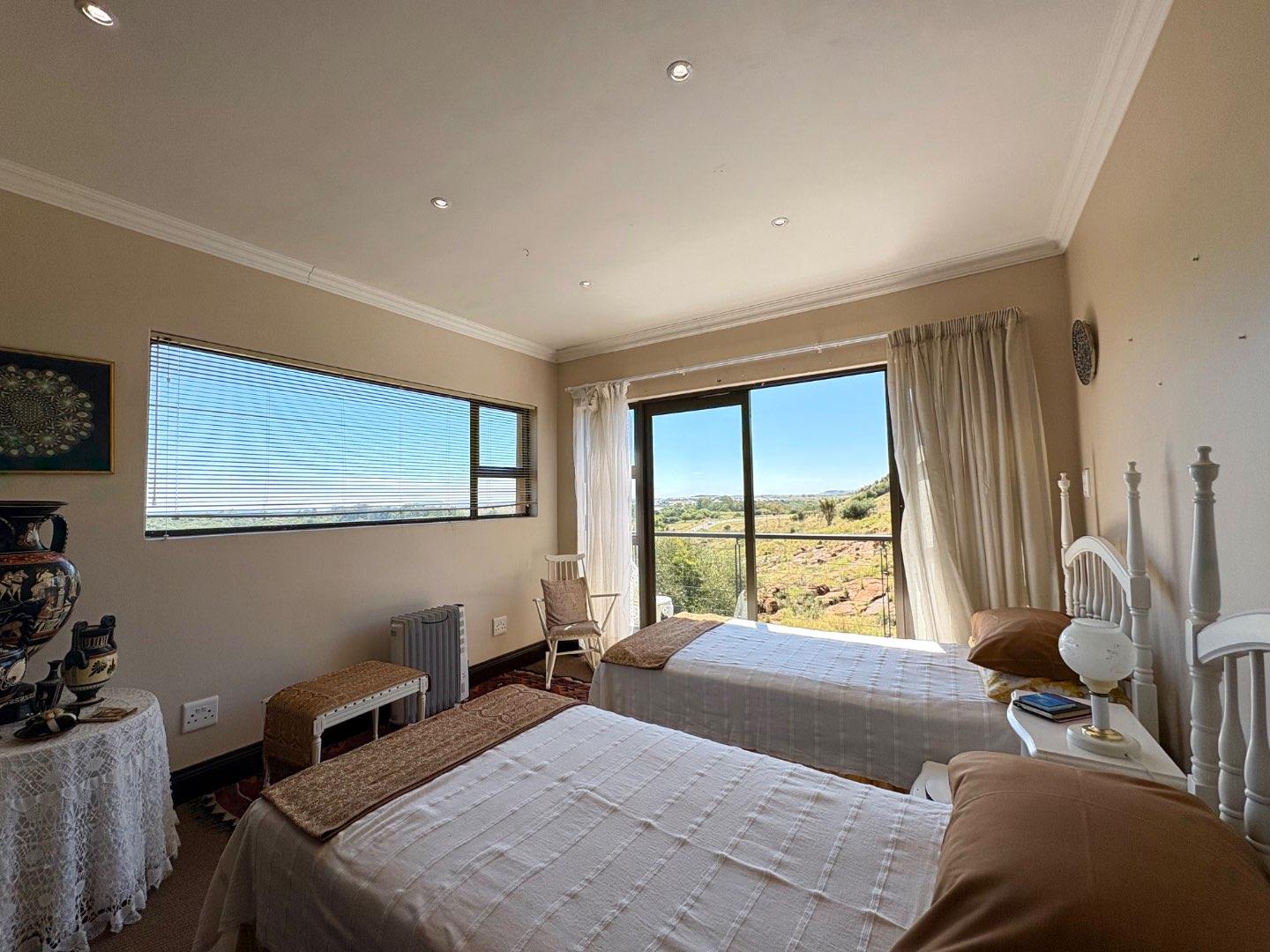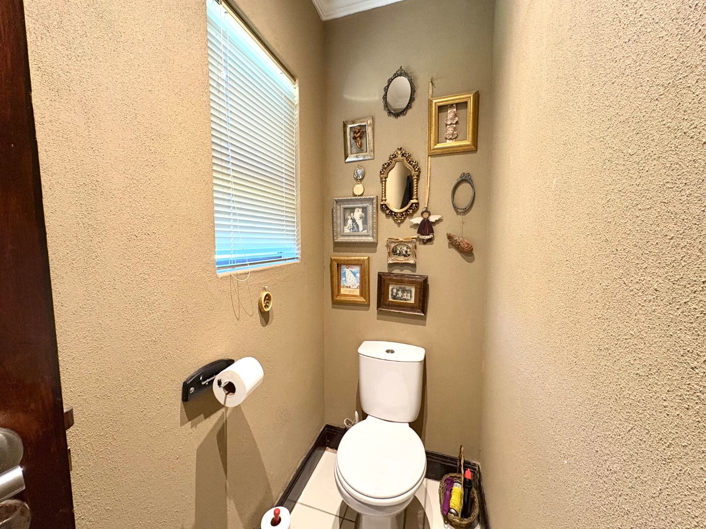 The home welcomes you with a spacious open-plan dining, living and kitchen area featuring double-volume ceilings that enhance the sense of light and space. A second living area overlooks the green belt includes a built-in braai and cozy fireplace – ideal for those crisp Free State evenings. Sliding doors open onto a covered patio where you can relax or entertain while soaking in the magnificent views.